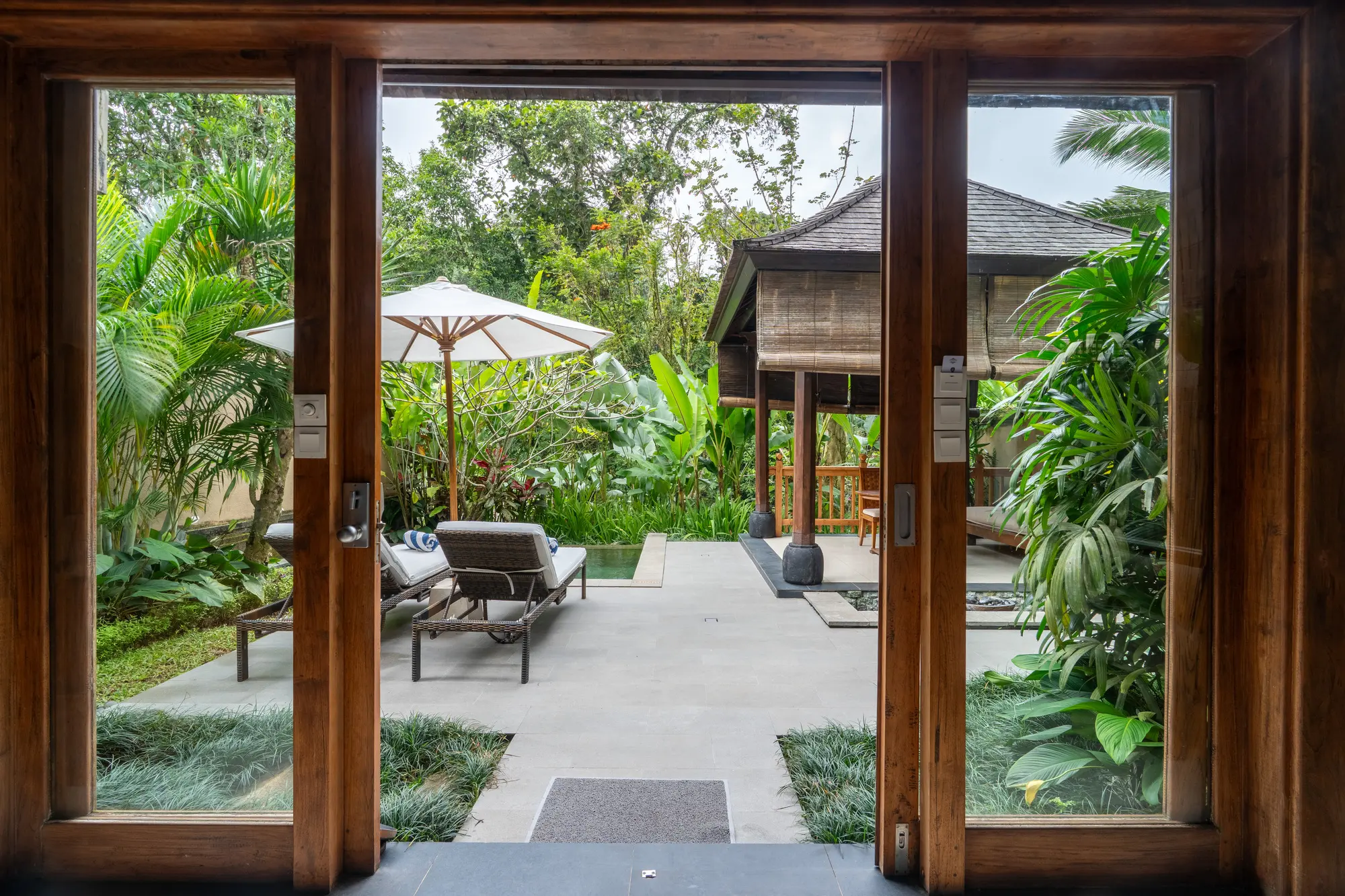 The villas come with double bed, catering to your specific needs, ensuring a restful stay with our King Koil pillow-top mattress. Elevate your relaxation in the lavish en-suite bathrooms, featuring luxurious bathtubs and refreshing rain showers. The spacious terrace with a private pool in each villa invites you to unwind and immerse yourself in the serene riverside ambiance, enhancing your Ubud resort experience. Every detail, from modern amenities to thoughtful design, is curated to create an unparalleled sense of harmony and elegance.